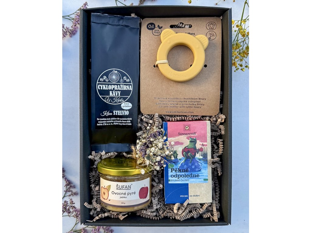 Dárek M15 káva, ovocné pyré, čaj a kousátko