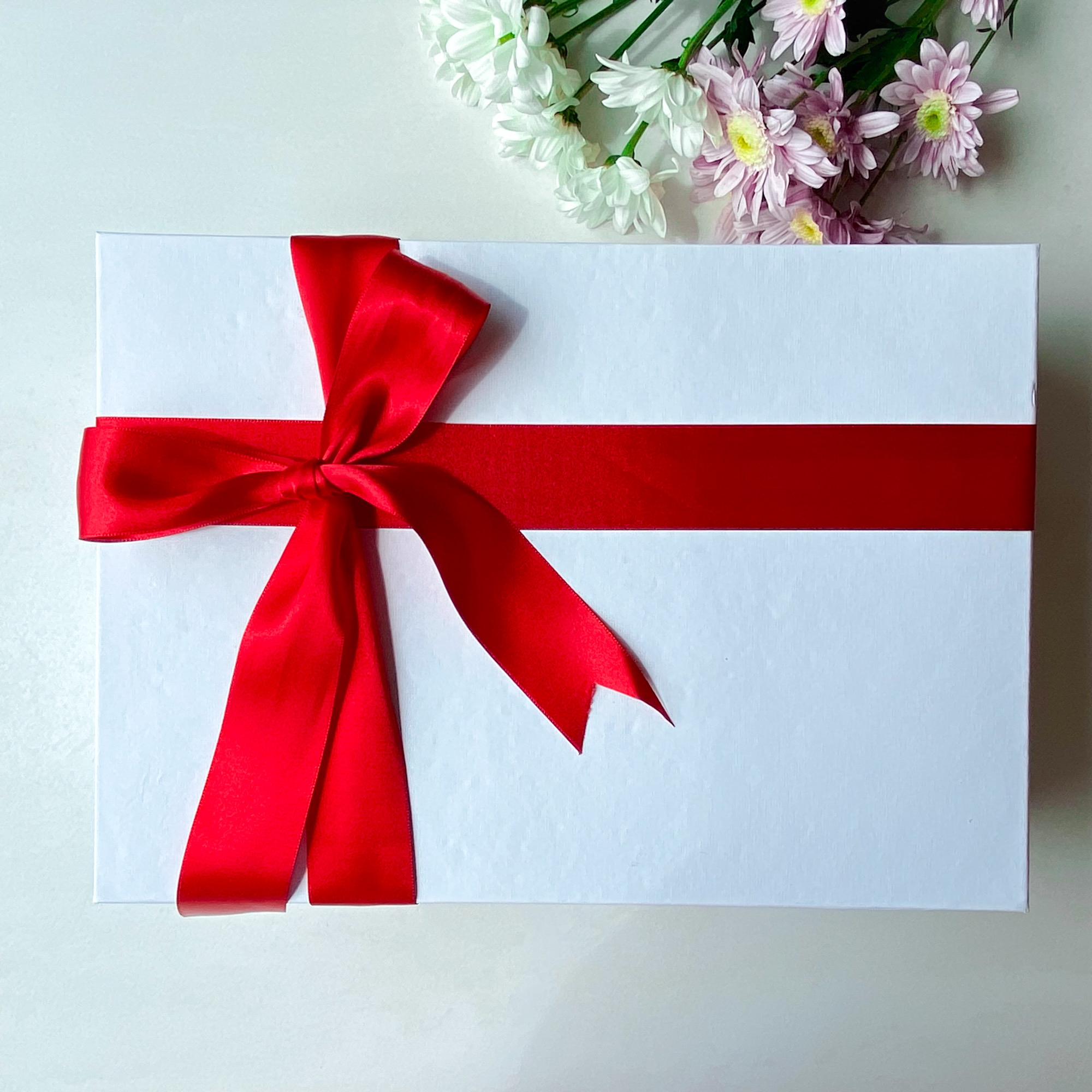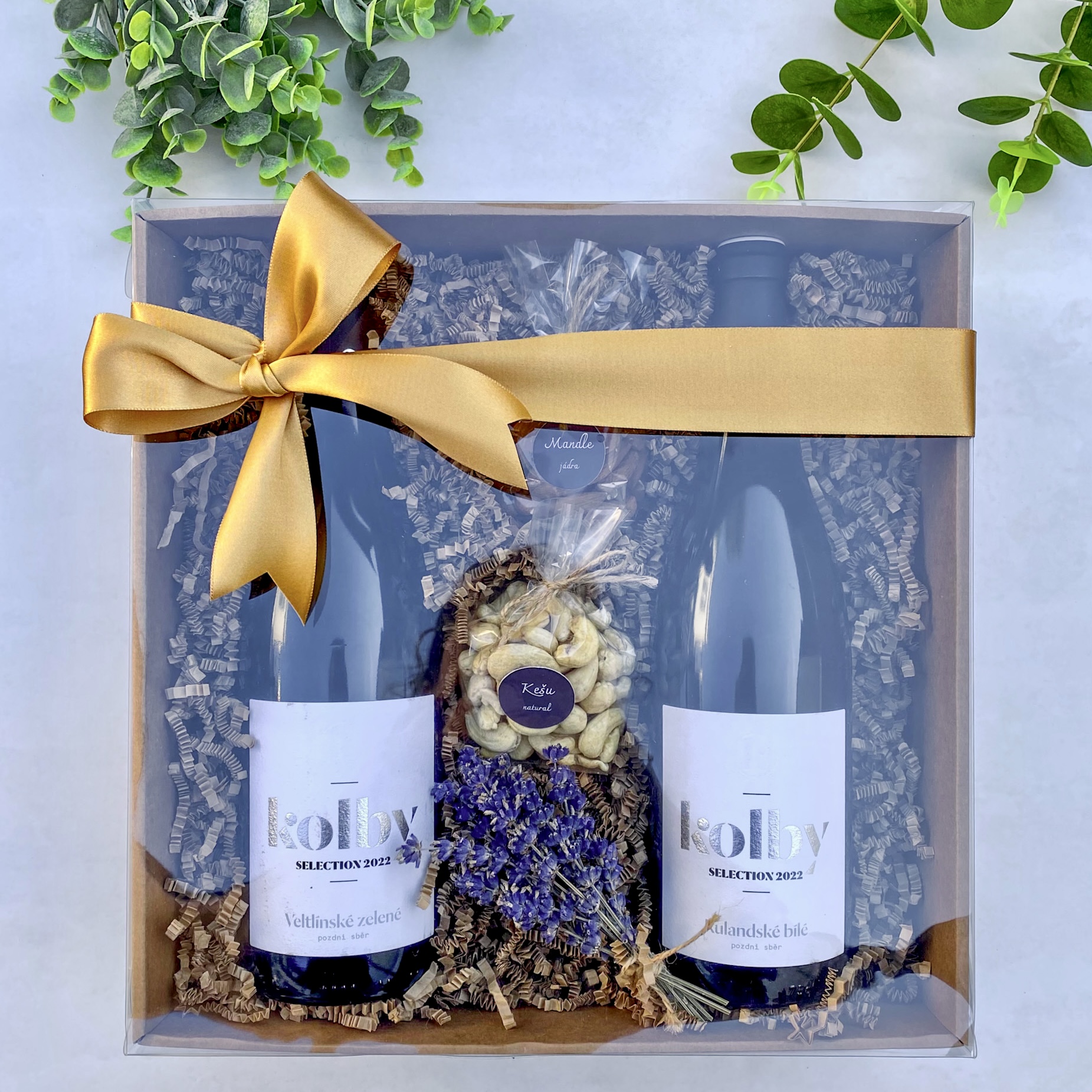 Dárek o velikosti 25x35 cm zpravidla obsahuje 4-5 produktů. Rozměr 30x30 cm je ideální na dvě lahve vína. Můžete zvolit mezi kraftovou krabičkou s průhledným víkem, který zaujme na první pohled svým designem nebo mezi černou nebo bílou krabičkou s plným víkem, které působí velmi luxusně.